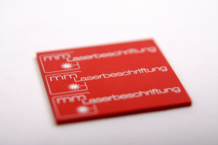 Eine Vielzahl von Kunststoffen lässt sich mit dem Laser beschriften. Je nach Laserquelle, Parameter und Kunststoff-Material wird ein Farbumschlag erzeugt oder das Material wird aufgeschäumt. Besonders gut eignet sich Lasertechnik, um Schilder und Etiketten in einem Arbeitsgang zuzuschneiden und zu beschriften.