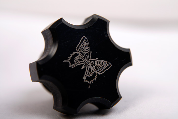 Bei Edelstahl kann zwischen einer umgefärbten und einer gravierten (d.h. spürbar tiefen) Ausführung gewählt werden. Grundsätzlich sind alle Schriften, Logos sowie Strichcodes oder Datamatrix-Codes ausführbar. Auch feinste Linien sind möglich.